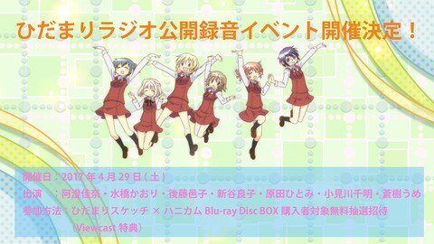 伝説的人気ラジオ ひだまりラジオ 公開録音イベント開催決定 ひだまりスケッチ ハニカム Box購入者無料抽選ご招待 Viewcast特典 株式会社アニプレックスのプレスリリース